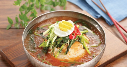 더울 때 먹는 음식 두 번째 냉면. 여름 하면 가장 먼저 떠오르는 음식인 냉면. 여름을 주제로 한 노래 가사에서도 냉면은 항상 등장하기 마련인 만큼 여름을 대표하는 음식이라고 해도 과언이 아니다. 시원한 육수에 쫄깃한 면발까지 먹는 즐거움이 가득한 음식인 냉면. 무더운 여름철에 떨어진 입맛을 다시 일으켜 줄 만한 새콤함과 고소함까지 가지고 있기 때문에 더욱 여름과 어울리는 음식이지 아닐 수가 없다. 시원한 육수가 매력적인 물냉면도 좋지만 매콤한 맛으로 먹는 비빔냉면도 별미로 꼽힌다. 입맛에 따라 골라 먹는 것을 추천한다.