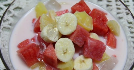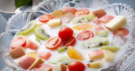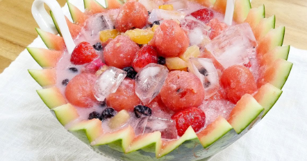 더울 때 먹는 음식 첫 번째 화채. 여름은 각종 과일들이 많이 생각나는 계절이다. 수박부터 시작해서 파인애플, 자두 등 여러 과일이 먹고 싶어지는 여름에 가장 어울리는 음식인 화채. 다양한 과일들을 한 번에 맛볼 수도 있고, 달콤한 과일에 우유를 넣어 얼음까지 띄운다면 시원한 간식거리가 되기 때문에 여름철에 즐겨 먹기에 아주 좋은 음식이다. 또한 다양한 과일을 한번에 먹을 수 있기 때문에 비타민 보충에도 도움이 되고 떨어진 기력을 회복시켜주기에도 아주 좋은 음식으로 생각된다. 무더운 날씨에 입맛이 없어 고생하고 있다면 새콤하고 달콤한 화채 한 그릇으로 떨어진 입맛을 되돌려 보는 것은 어떨까.