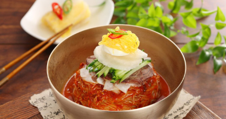 더울 때 먹는 음식 다섯 번째 비빔면. 삼겹살 먹을 때면 어김없이 생각나는 음식인 비빔면. 매콤하고 새콤한 비빔면 한 그릇과 함께 잘 익은 삼겹살 한 점을 함께 먹는다면 세상 맛있는 음식들은 눈에도 보이지 않을 것이다. 더구나 비빔면은 다른 라면들과 다르게 차갑게 먹기 때문에 여름철에 먹기에도 좋은 음식으로 꼽힌다. 쫄깃하게 끓여 낸 면을 차가운 물에 식힌 후 비빔면 소스를 넣어 비비기만 하면 완성되는 비빔면은 조리하는 시간과 방법 모두 간편하기 때문에 집에서도 부담 없이 즐길 수 있다. 조리방법대로 만든 비빔면에 참기름과 깨, 열무김치, 김 가루를 넣어 함께 먹으면 더욱 맛있게 즐길 수 있으니 참고하도록 하자.