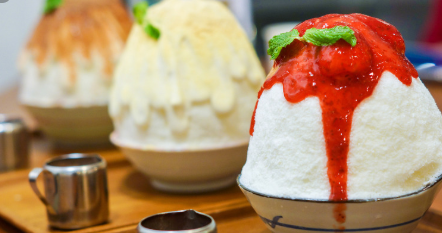 더울 때 먹는 음식 여섯 번째 빙수. 무더운 더위를 한 번에 날려줄 시원한 간식인 빙수. 팥빙수부터 시작해 다양한 빙수 종류가 있는데, 요즘에는 빙수를 전문으로 판매하는 곳도 많이 있기 때문에 선택할 수 있는 폭이 훨씬 넓어졌다. 딸기, 멜론, 초콜릿, 파인애플, 녹차, 인절미 등등 그 종류도 셀 수 없으니 입맛에 맞는 빙수를 골라 먹어보도록 하자. 부드럽게 갈린 얼음 위에 보기만 해도 먹음직스러운 고명들을 잔뜩 올리고 연유까지 뿌려 먹으면 달콤한 맛에 더위 따위는 진작에 잊은 지 오래일 것이다. 맛있다고 무턱대고 먹으면 머리가 띵할 수 있으니 차가운 음식은 반드시 주의해서 먹도록 하자.
