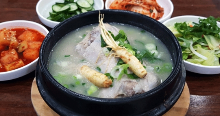 더울 때 먹는 음식 네 번째 삼계탕. 이열치열이라는 말의 대표적인 사례인 삼계탕. 무더운 날씨 탓에 차가운 음식으로 더위를 날려버리고 싶지만 떨어진 원기를 회복하기에는 뜨거운 삼계탕 한 그릇이 제격이다. 다양한 약재와 함께 닭 한 마리를 통째로 넣어 요리하는 삼계탕을 한 그릇 뚝딱 해치우고 나면 속까지 든든해져 건강한 기분을 들게 한다. 또한 여름이면 어김없이 찾아오는 복날에도 즐길 수 있기 때문에 원기회복을 원한다면 삼계탕 한 그릇으로 부담 없이 즐겨보도록 하자.